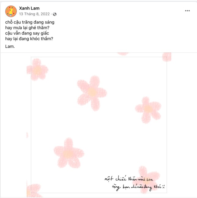 Xanh Lam đem câu chữ, vần thơ đến khán giả đã được 4 năm. Trong quá trình phát triển, khán giả dần "nhớ nhung" Xanh Lam nhiều hơn khi các bức vẽ với nét vẽ “chữa lành” xuất hiện. “Ngày càng nhiều các thông điệp mà Xanh Lam muốn truyền tải đến mọi người. Nhưng việc tìm kiếm được một bức vẽ thực sự "match" với câu chuyện không bao giờ là dễ dàng. Bên cạnh đó, việc sưu tầm tranh, ảnh từ các nguồn miễn phí sẽ rất khó tránh khỏi các vấn đề bất cập như bản quyền, chất lượng, trích nguồn,... Vì thế, mình bắt đầu hướng đến việc học vẽ, tập vẽ để có thể tạo ra những bức tranh thể hiện cảm xúc Xanh Lam muốn truyền tải một cách trọn vẹn nhất” - Lam chia sẻ.